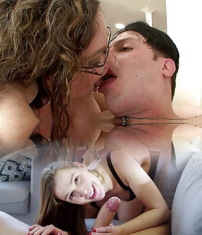 Brunette teen puts on her finest stockings and lingerie to please two horny guys