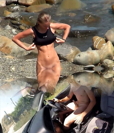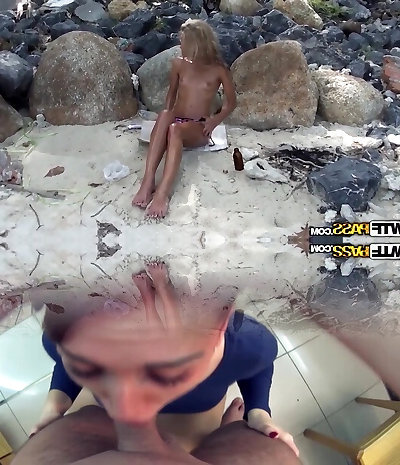 Wild outdoors fucking on the beach with faux boobs Blonde Fesser