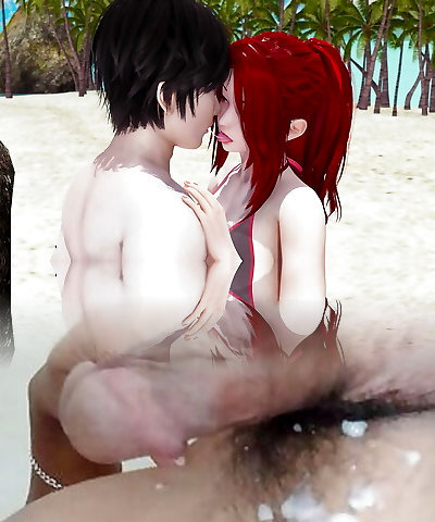 Toying with big mammories at the beach and fucking her hole at home