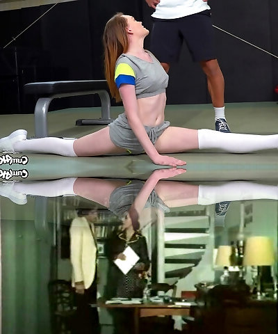 Tiny Slim Sandy-haired Ballerina Shows Wonders Of Flexibility While the Trainer Is Boinking Her Pussy