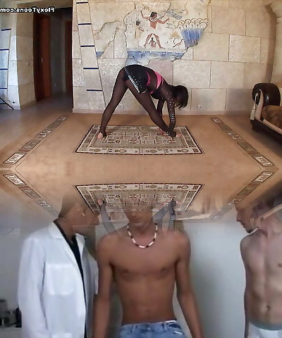 Big-jugged and dark skinned babe shows unbelievable flexibility