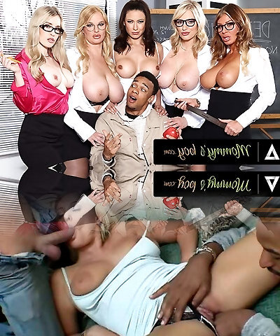 MOMMY'S BOY - Naughty Cougar Teachers Team Up To Discipline Draped Stud In Detention! REVERSE GANGBANG