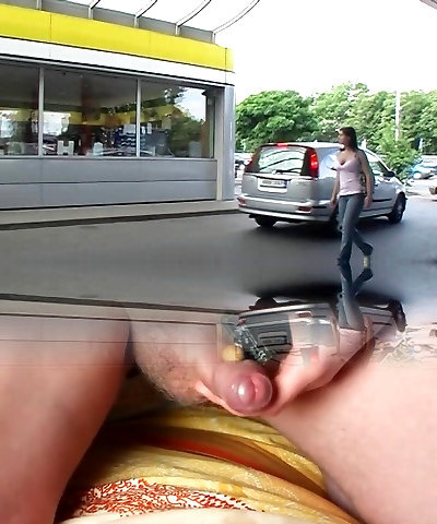A beautiful German lady gets splashed with cum from the glory hole