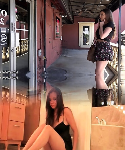 In a public bathroom she gargles a sausage through a gloryhole