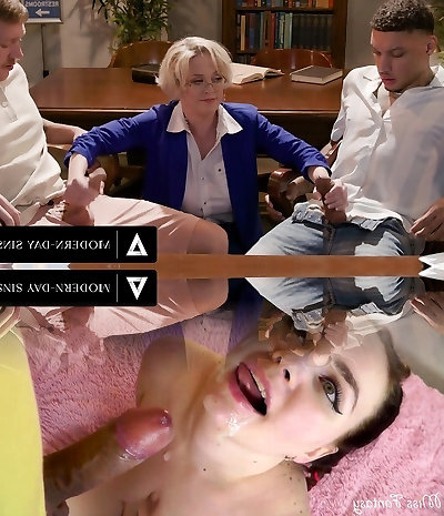 Mature Tutor jerks couple dicks and gets double penetrated by students