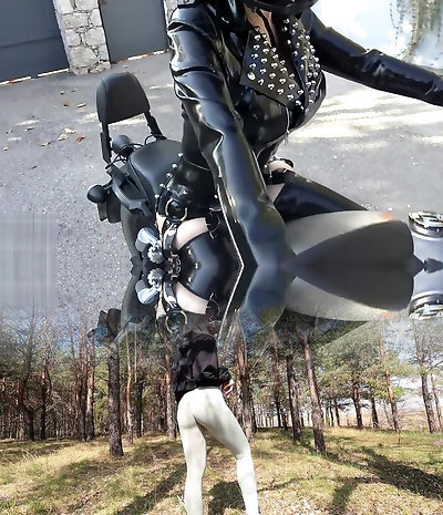 Wonderful fledgling busty latex slut and her booty bragging outdoors
