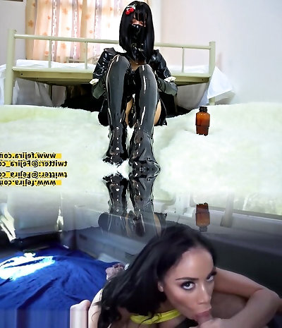 Fejira com Sailor suit latex-clad girl stroking herself