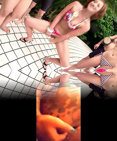 Orgy in the pool, international sex and Asian girls decorated in sperm!
