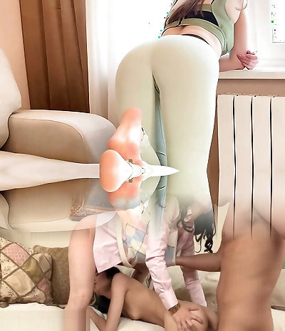 Teen ass fucking trio all take his dick up their tight booties