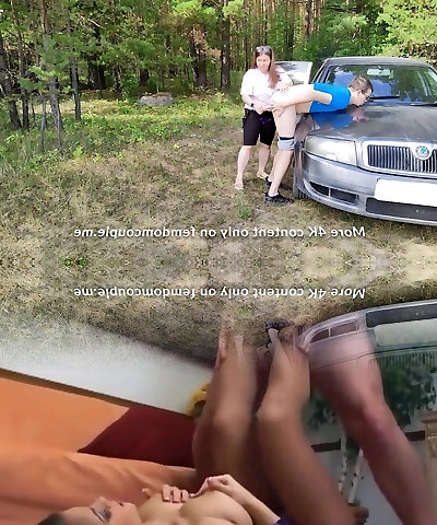 Public The Wife Was Very Excited On The Road And Fucked The Belt Cock On The Rubber Hood Of The Camper