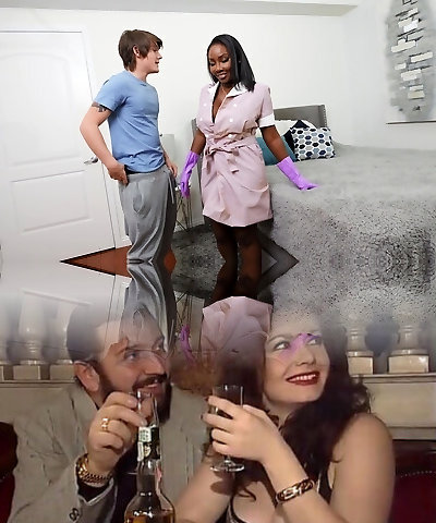Big dark-hued cocks enter the slut, and the cuckold has a smile on his face!