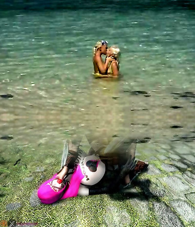 Horny German lesbos dildoing each other on the beach