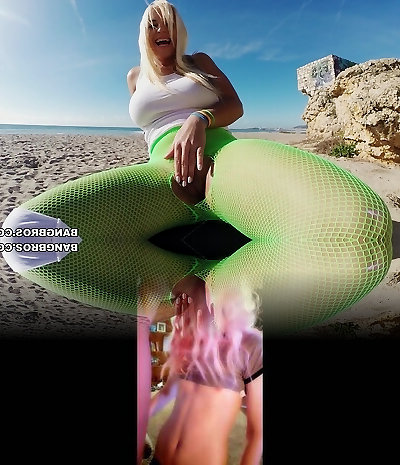 Wild outdoors fucking on the beach with faux boobs Blonde Fesser