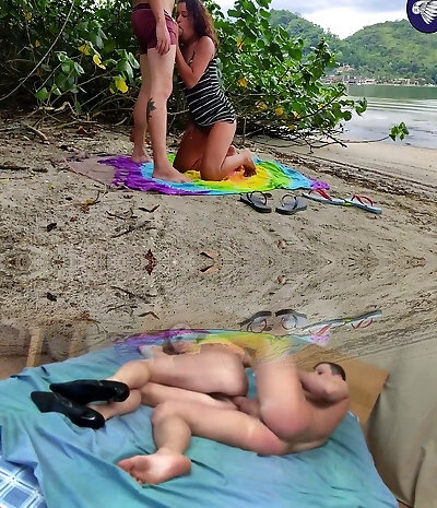 Seeing another couple fuck on the beach made this brunette want to suck some hard-on