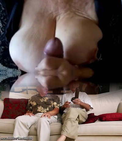 Mature grey haired chubby slut with huge rack rides fat strong bone