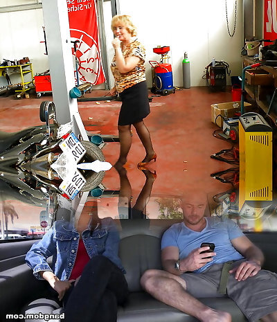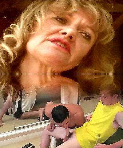 Tanned blond haired bitch with saggy gross tits sucks a fresh powerful dick