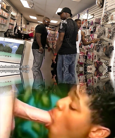Slut at the dildo store gangbanged by black guys