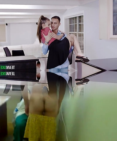My stepbrother goes to work, what he doesn't know is that I linger at home fucking his wifey