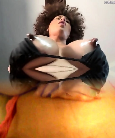 enormous tit ebony squirting, and bouncing her saggy tits