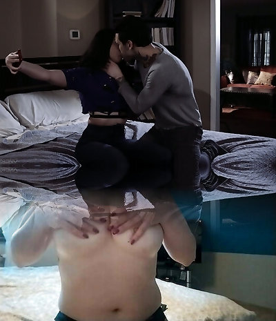 Sexy chick filming Mina and Madison smooch and cuddle naked