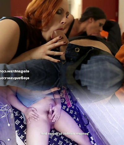 Sizzling hot fire red-haired girl and her chunky buxom mature partner