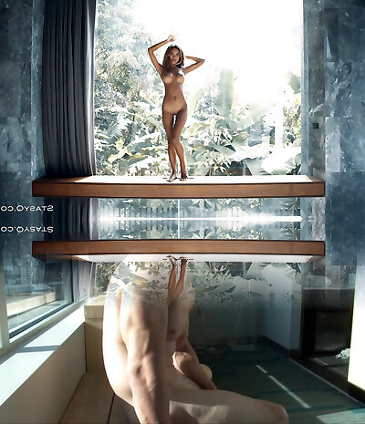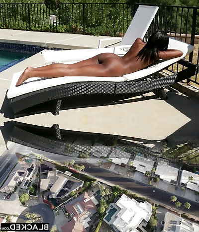 Pretty svelte ebony doll Ashley Aleigh poses so that her juicy butt looks gorgeous