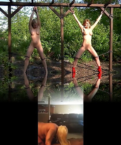 Sexy busty blonde teenies played thrilling outdoor bondage