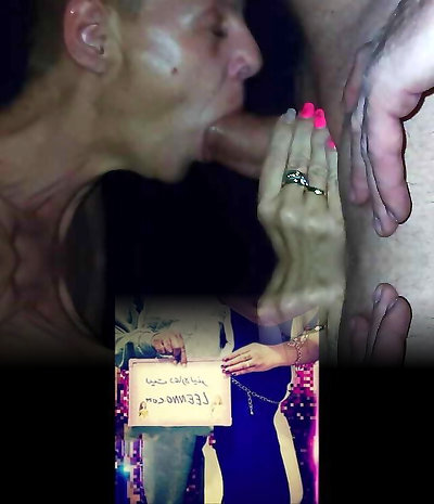 Dirty hot ebony young slut on her knees feeding on a lot of white meatpipes