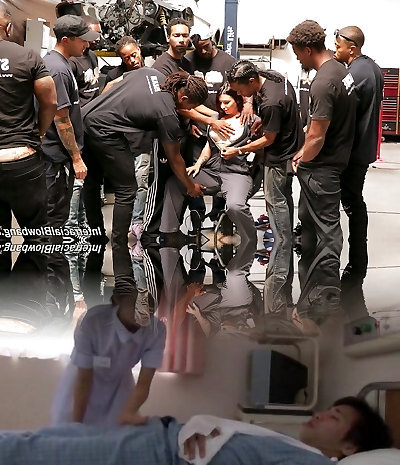 Surrounded up to five milky dudes sexy dark-hued Ana Foxxx works on their dicks