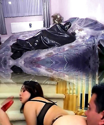 Kinky Chinese cutie sucking two dicks