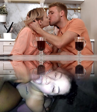 Dark-haired Kiara Gold on her knees sucking a ample dick of her lover