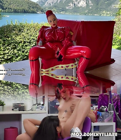 Lesbo Dildo Suck and Latex Queening - AryaGrander - Dominatrix and rubber submissive girl