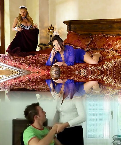 Huge-boobed maid attacked by a pussy craving brunette in lingerie
