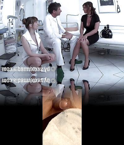 Big-titted Doc milking the prostate. Stuck her finger up the ass