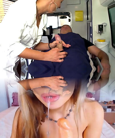 Closeup video of Japanese nurse giving head and getting pulverized