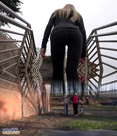 outdoor street candid large brunette with a hefty butt and saggy boobs