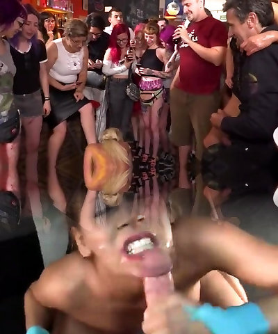 Lots of couples observe the way brunette in corset is romped doggy hard