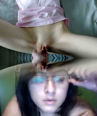 Teen small pointy tits nipples fucking pussy hard with dildo
