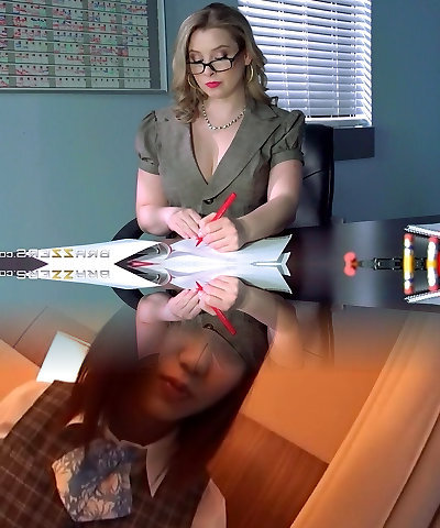 Cute busty teacher Natasha Nice fucks Asian schoolgirl Ember Snow